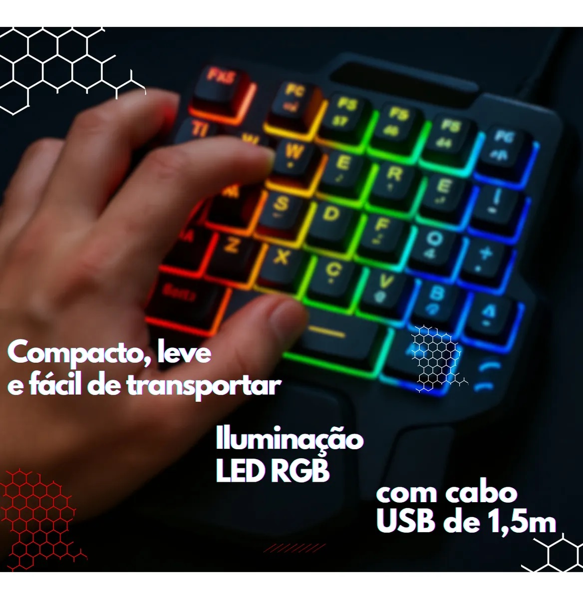 Teclado Gamer Uma Mão One-hand Lehmox Ley-2117 Rgb Led Usb